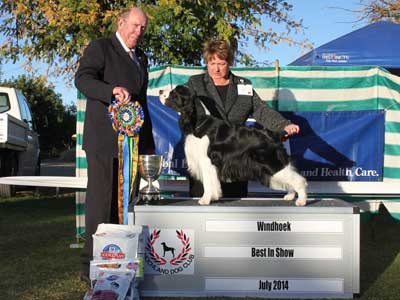 Luke won back to back group firsts at the champ shows in Windhoek. Luke went on to win back to back Group firsts at the Hottentots Holland KC and the Cape Town KC open shows and continued on to Best in Show under judge Mervyn Heroldt..