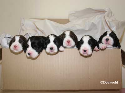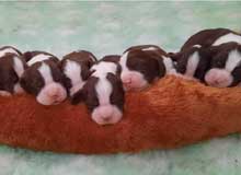 Eight beautiful pups, 3 liver/white females, 2 black/white females, 2 liver/white males and 1 black/white male were born on the 27 August 2011.