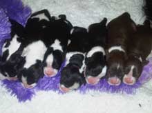 Seven beautiful pups, five black&white males and two liver&white females born to Pearl, Tanjo Obsession and sired by Luke, Ch Tanjo Jedi Knight.